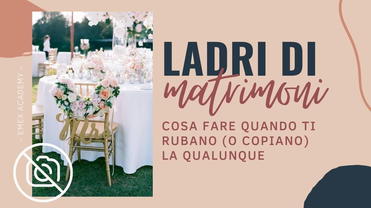 Sei ad un click dal primo e unico corso online dedicato a uno degli argomenti più spinosi della Wedding Industry: il copyright. Apprendi le migliori strategie per proteggere il tuo lavoro ed i tuoi diritti creativi dagli scopiazzatori seriali.